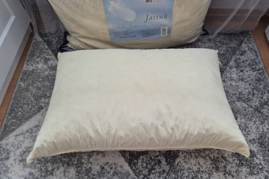 Veliki pernati jastuci, dimenzije 60x80 cm, izvana pamuk, debelo punjenje, 100% guščje perje. Mogu se prati na 60°C i sušiti u sušilici. Kratko korišteni, oprani i čisti. U originalnoj ambalaži. Cijena je za oba komada zajedno.
