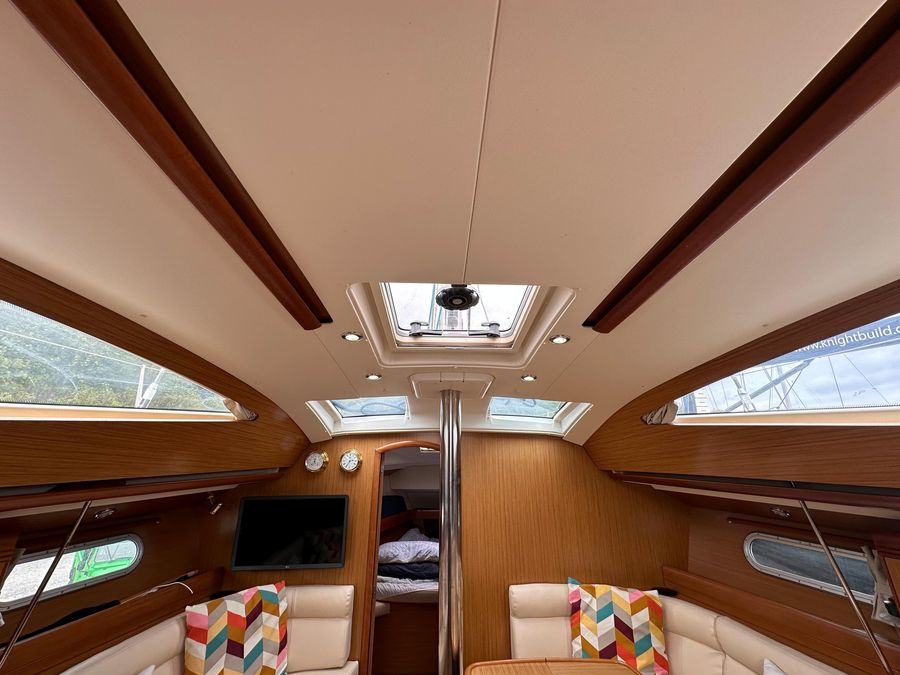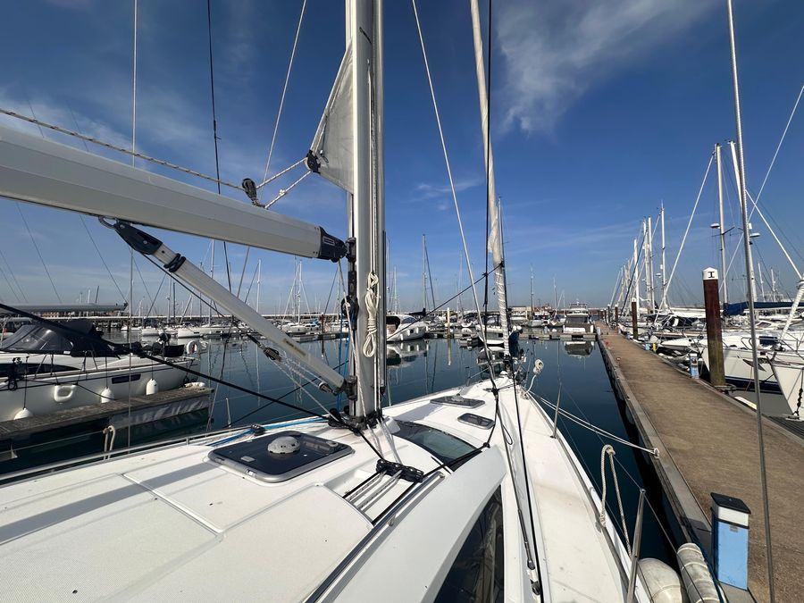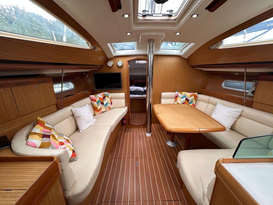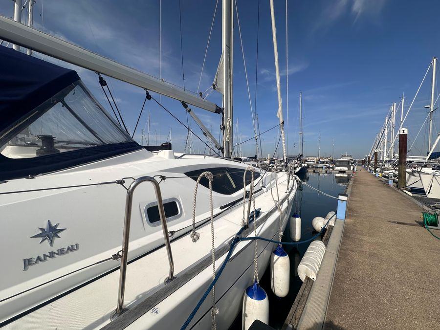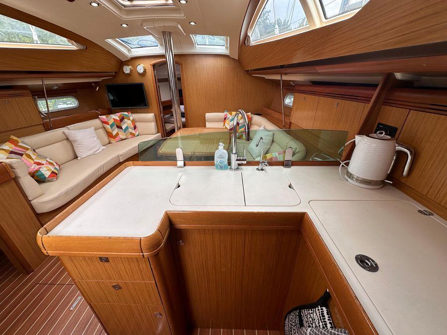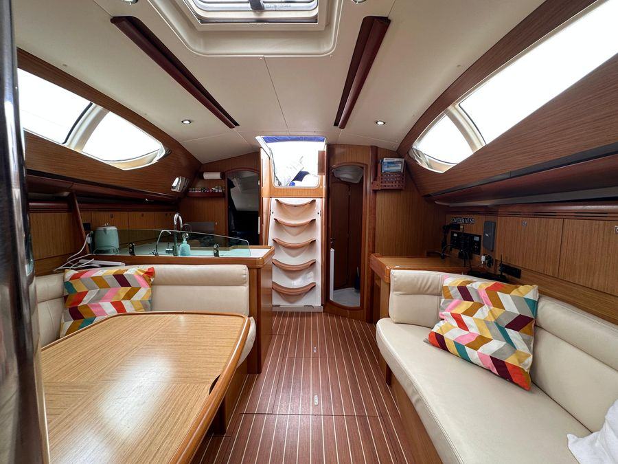 Fin Keel with Bulb, Yanmar Inboard Diesel Engine with Inter Cooling, Jeanneau Owners Specification which provides Two Cabins with 4 Berths including 2 in the Saloon & Two Heads. New Standing Rigging in 2023, Bow Thruster & Liferaft.