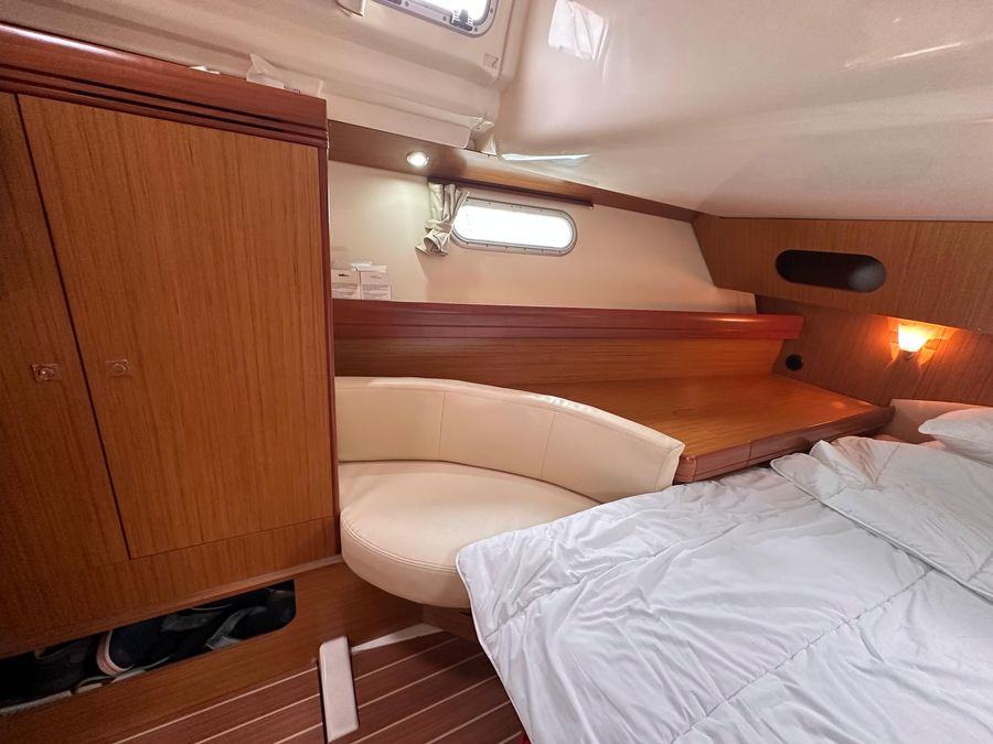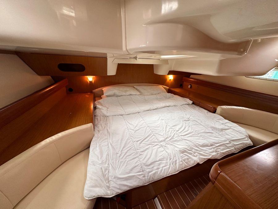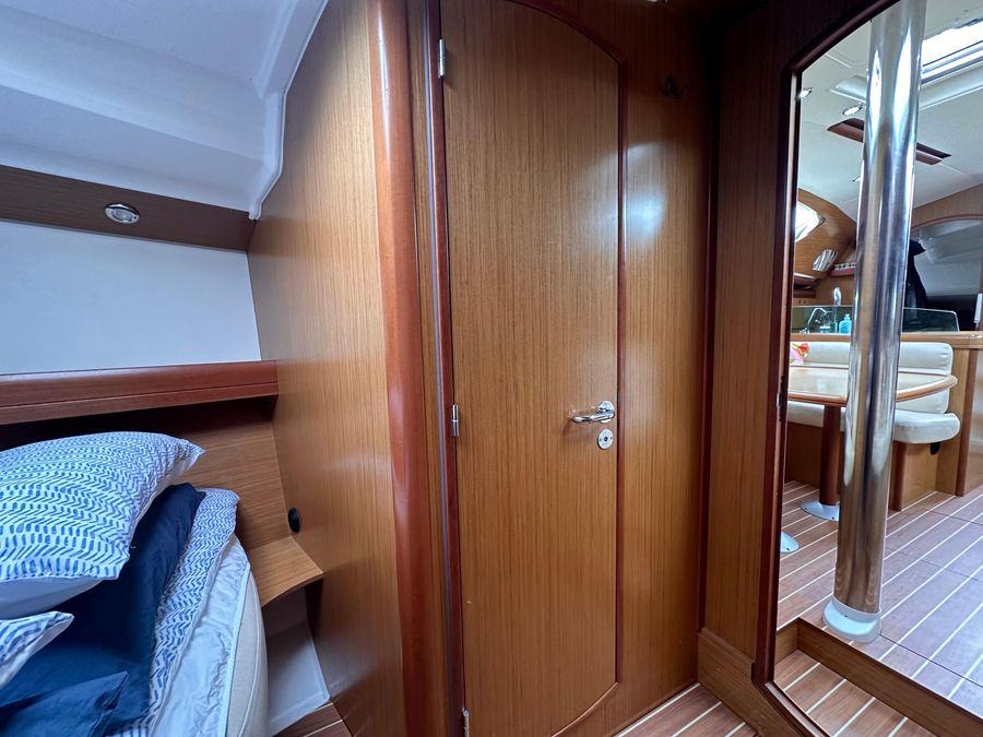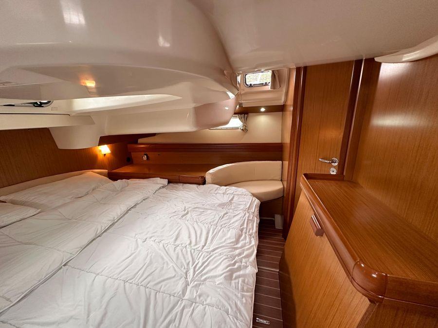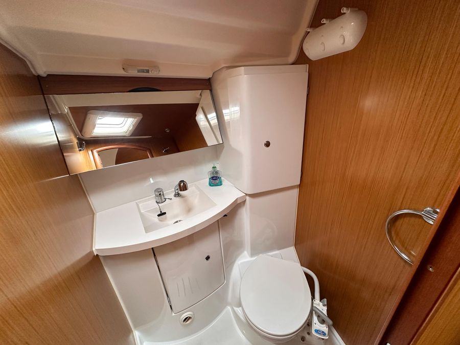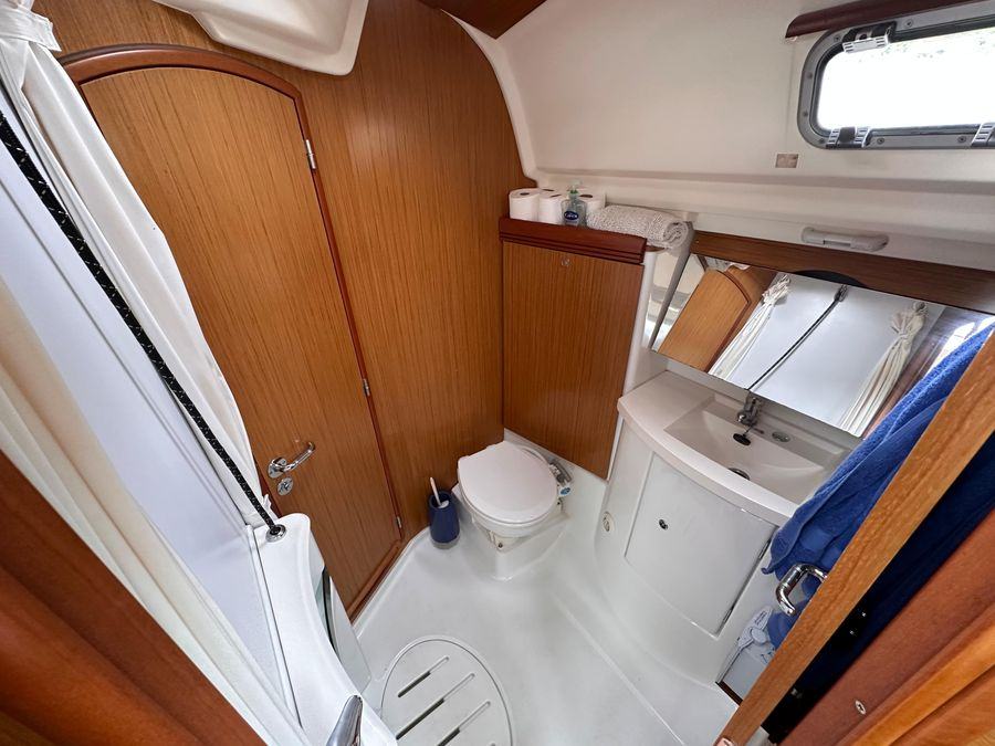Fin Keel with Bulb, Yanmar Inboard Diesel Engine with Inter Cooling, Jeanneau Owners Specification which provides Two Cabins with 4 Berths including 2 in the Saloon & Two Heads. New Standing Rigging in 2023, Bow Thruster & Liferaft.