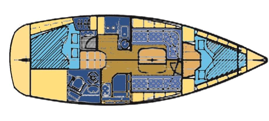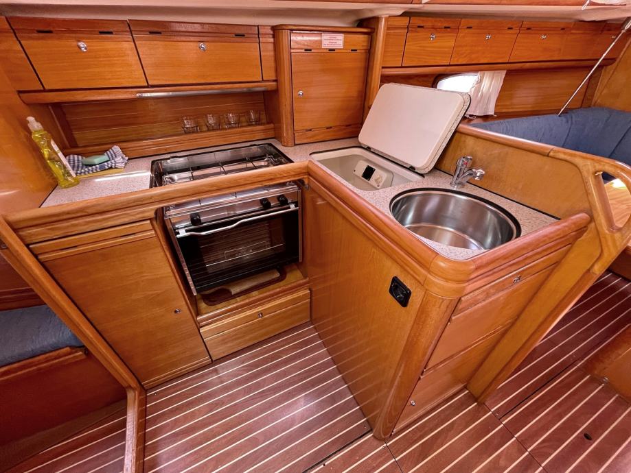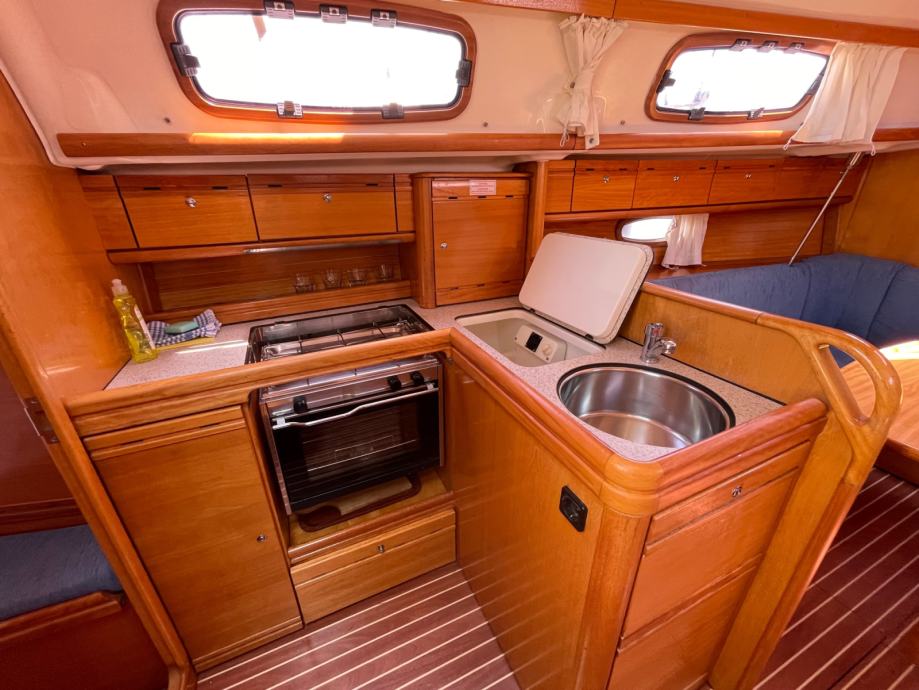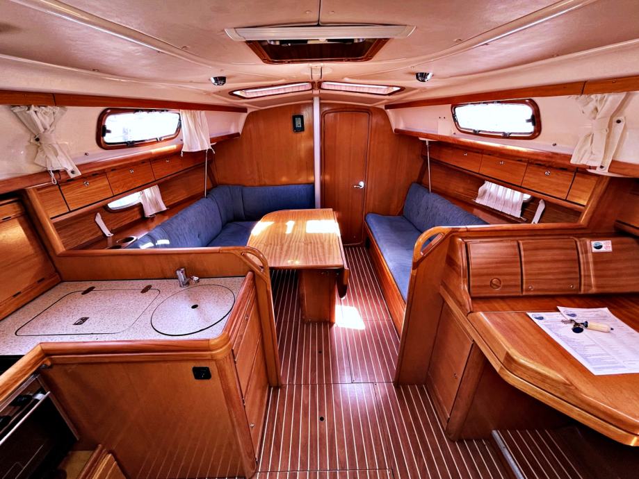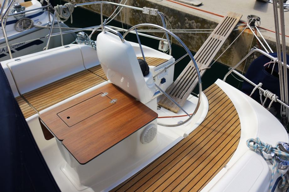 Roll glavno jedro + roll genoa, motor Volvo Penta D1-20 (19 HP), ploter Lowrance Elite 5m, VHF Navman VHF 7100, kapacitet tanka goriva 150 l, kapacitet tanka vode 210 l, el. hladnjak, CD/MP3 player, krmeni tuš