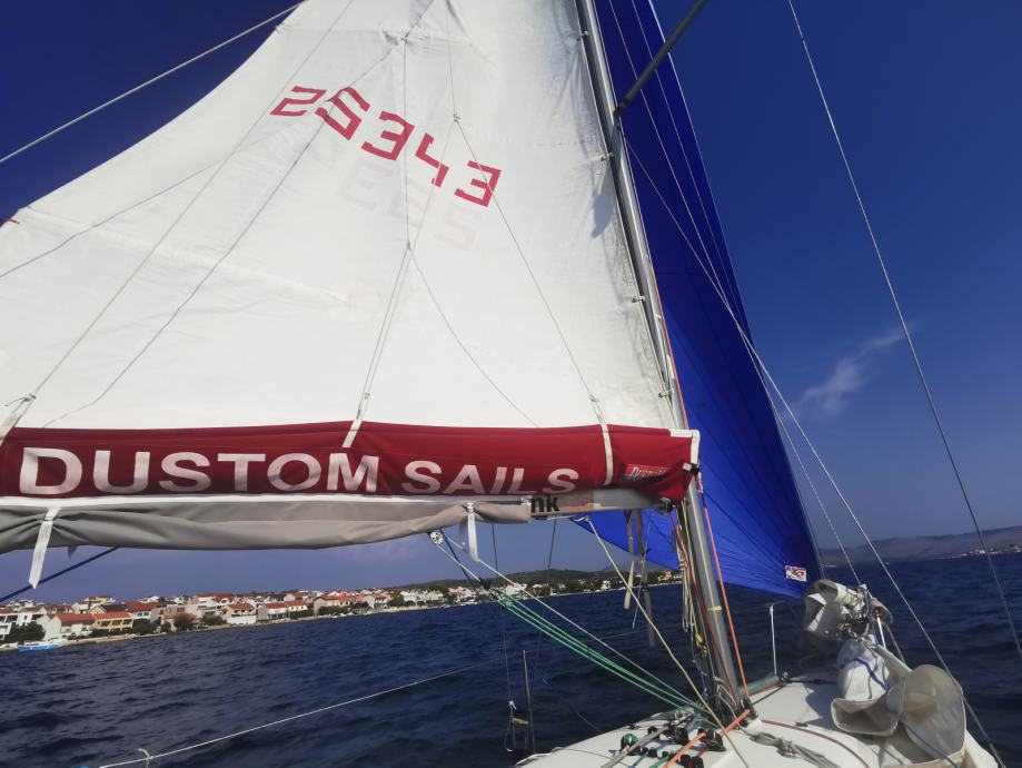 Od jedara ima 2 glavna, dva floka, genaker i spinnaker (tangun).
