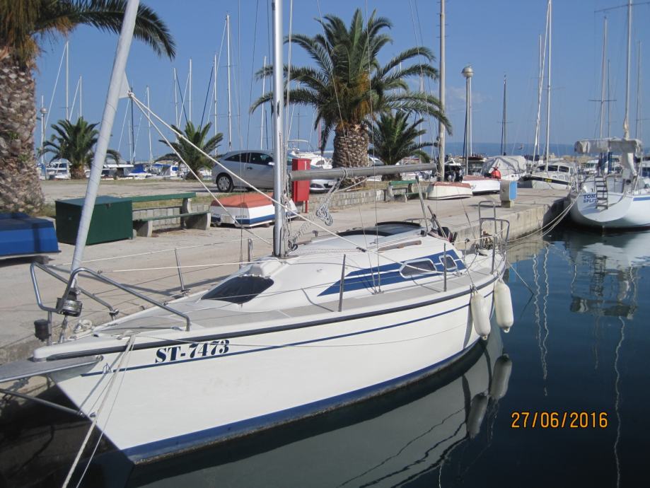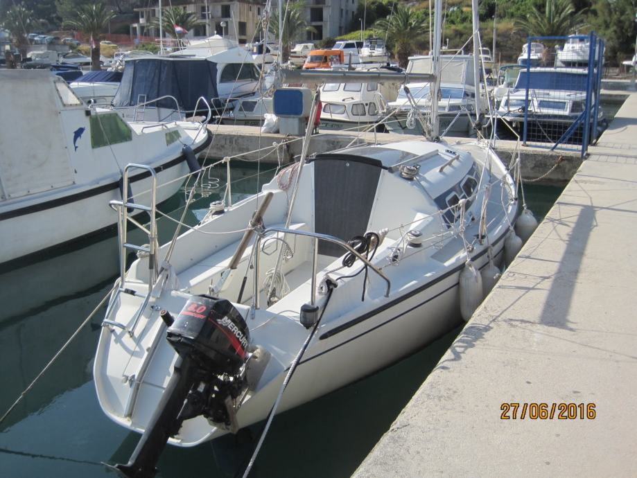 Dehler 25,kvalitetna obiteljska jedrilica,1998 godište,odlično očuvana, malo korištena.Jedra(glavno,2floka i spinaker) u odličnom stanju,Uvlačiva kobilica i timun.Gaz 0,4-1,5m omogućuje pristajanje i vez bilo gdje.Kvalitetna i čvrsta izrada,bez osmoze i pucketanja palube.Glavni pogon je elektromotor s kojim postiže 3kt(služi za izlazak iz marine,kratka jedrenja i ribolov).Trenutno je skinut ,servisiran i spreman za ponovnu ugradnju.Za dulje plovidbe vanbrodski Mercury 8ks.Provena kabina +2 bočna ležaja,kuhinja ,unutarnji wc,akumulatori Gel 2X165Ah + servisna 75 Ah,punjač baterija,Kompletno opremljena,trajno registrirana.Novi antifouling i poliranje 05/2019.Kupljen novi brod tako da je vlasnik spreman čuti svaku ponudu.