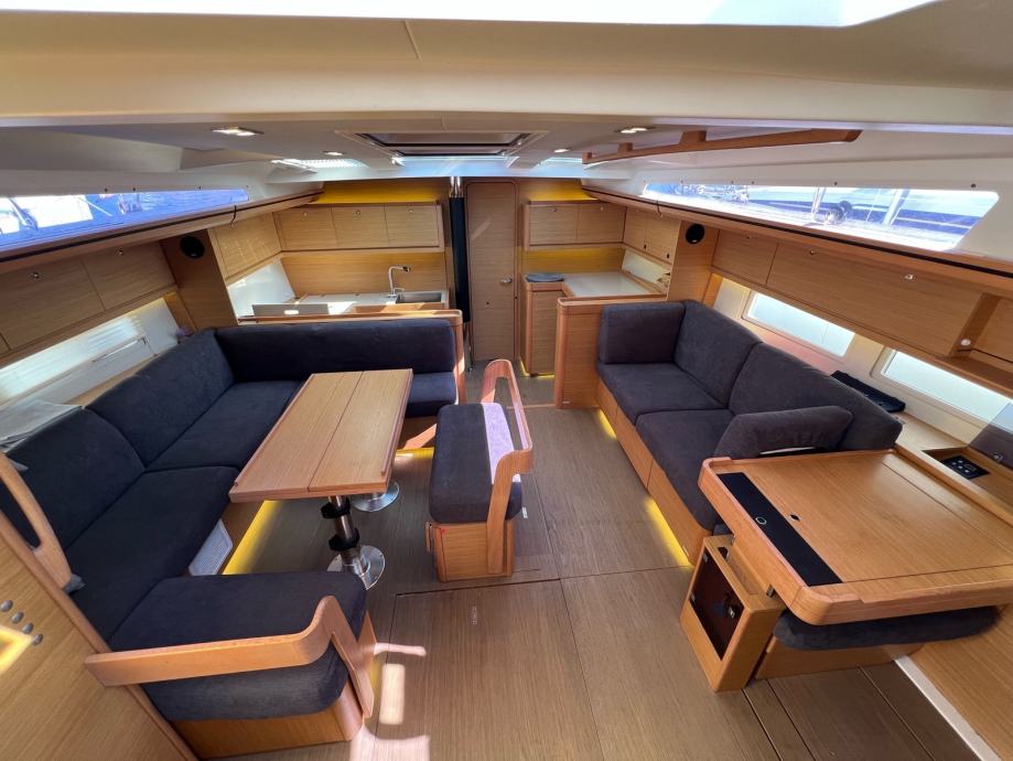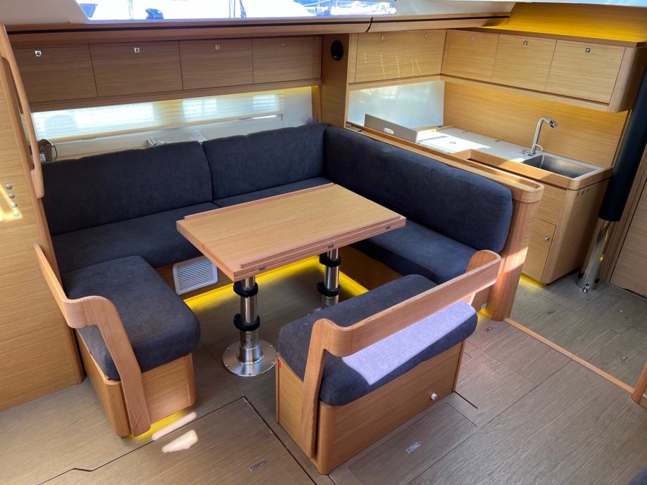Spacious U-shaped saloon with convertible seating for 2 extra berths