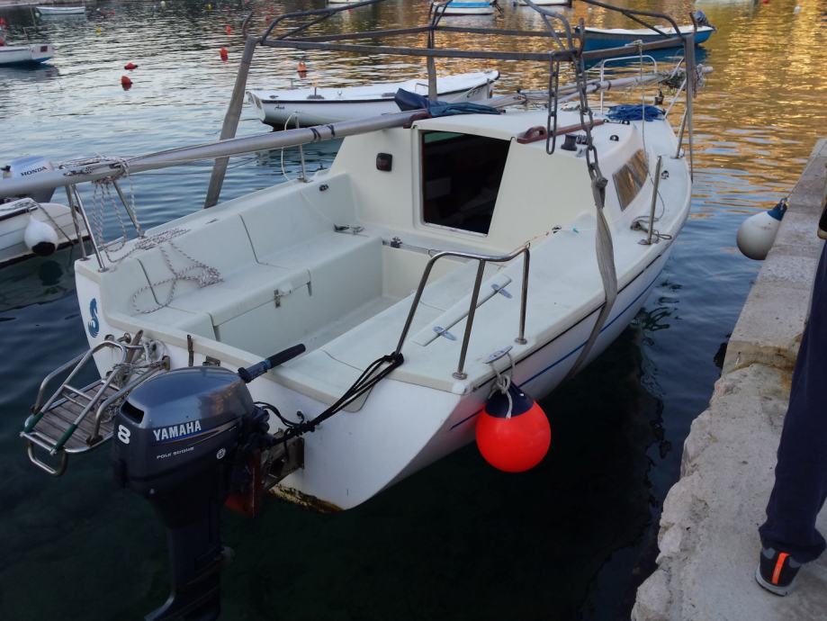 Prodaje se obiteljska jedrilica Elan 19 u jako dobrom stanju - očuvana i održavana, sa komplet jedrima. Jedra su u odličnom stanju. Jarbol original, sajle odlične, konopi promjenjeni 2014 godine. Kabina je komplet renovirana 2012 godine. Plovilo je 1986 god. Od opreme ima sve, platforma za kupanje, rasvjeta kabine, rasvjeta plovila, jastuci, mini kuhinja, struja komplet nova, utičnica 12V, akumulator 100Ah, fish finder Eagle Cuda i još dosta opreme. Sve ostalo na jedrilici je original i nisu rađene nikakve preinake na plovilu. Nisu potrebna nikakva ulaganja - spremno za plovidbu. Uz plovilo dolazi i prikolica - nije registrirana. Pomična kobilica - uredno u funkciji. Jedrilica je trajno registrirana, HR zastava. Plovilo se prodaje zbog kupovine većeg plovila - HITNO