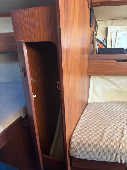 Dvije kabine, salon, wc, kuhinja, frižider (12v, 220 v, plin), sidreni vinč sa 50m Inox lanca, platforma, autopilot, glavno jedro - lazy bag, roll Genova, spray hood, krmeni bimini sa sjenilima za hlad, brodski motor yanmar 2GM, tender 2,40 m i vanbrodski motor Suzuki D2.5.