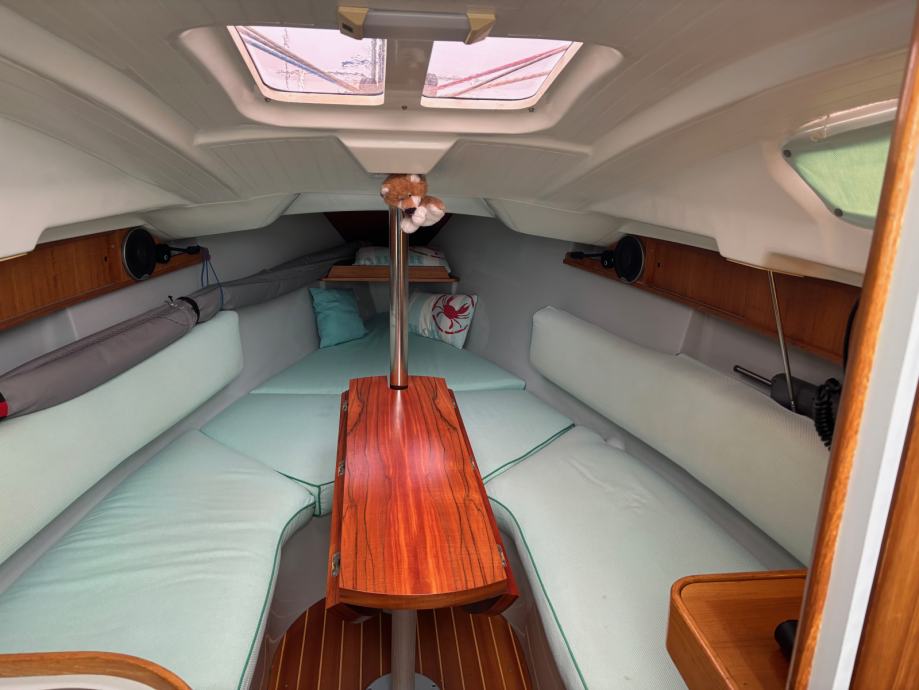 Prodajem dobro očuvanu jedrilicu. Zamijenjena su jedra (glavno, genova i genaker), vodena pumpa, punjač baterija i solarni punjač, webasto, hladnjak, WC, autopilot, radio, električna upravljačka ploča..