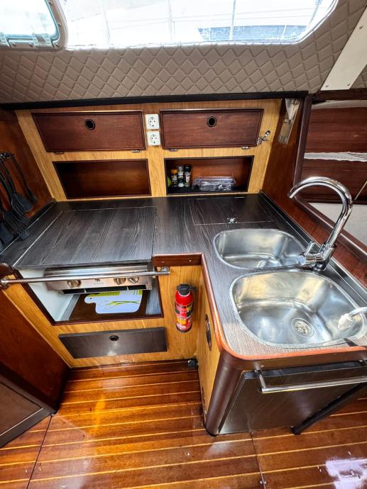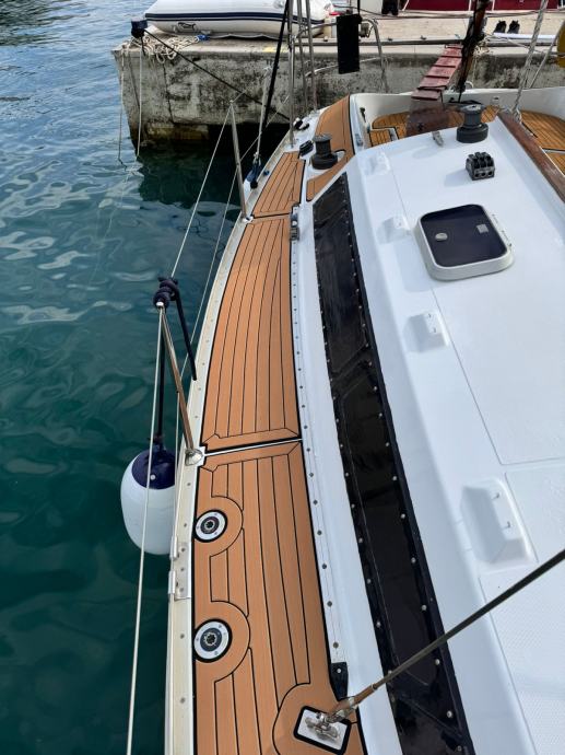 Prodajem jedrilicu iz naslova. Enterijer sređivan na proleće 2024, novi jastuci u kabinama i u kokpitu urađeni 2024. Umjetna tikovina na cijelom brodu urađena 2024
