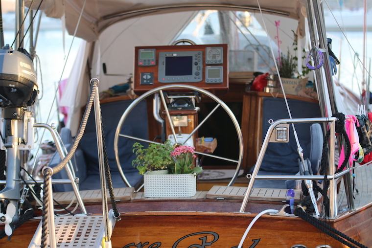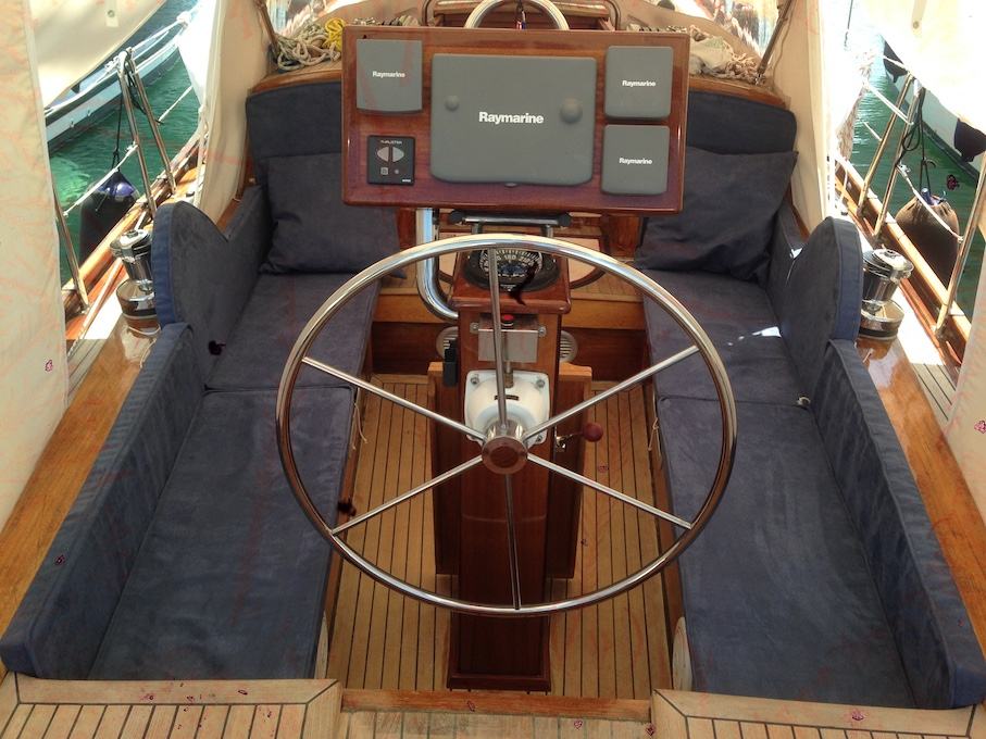 Gradnja West system epoxy tri sloja: zavrsni mahagoni, kabina mahagoni+tik, paluba tik.