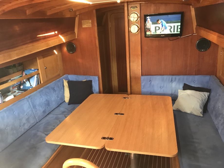 Jarbol Furling Sparcraft, roll genoa, jedra Ullman, vinčevi Andersen x4, elektricno sidreno vitlo Lofrans 1400W (nozne+kokpit komande sa displejom), sidro trefoil prokrom 20kg, bowthruster 75kgf, elektricni WC, krmeni tus, boiler topla voda, kuhalo plin+pećica, frizider 120lit, podvodna Led svijetla