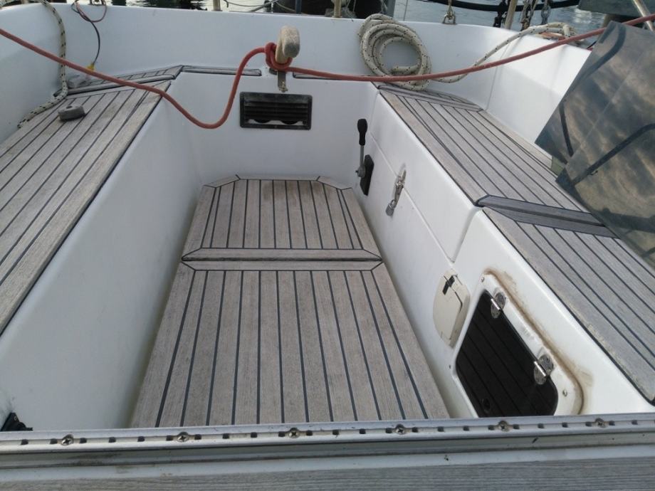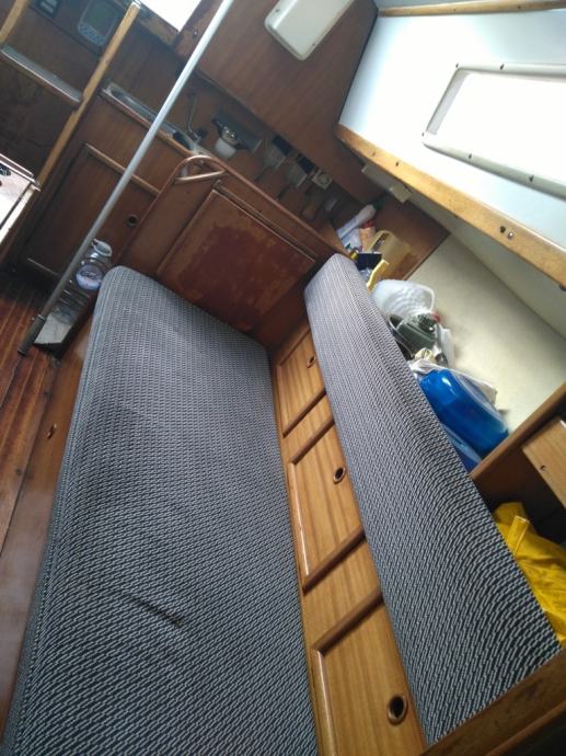 Jedrilica je održavana što se vidi na svakom detalju interijera i vanjskog prostora ali je prošlu jesen doživjela bočna oštećenja na uskom vezu na Viru. Na slikama se vidi oštećenje i potrebno je zamijeniti bočni gumeno-aluminijski branik. Tijekom prošle godine temeljito je uređena stolarije, lakirana i oličena. Jedrilica se trenutno nalazi na suhom vezu na Viru (trailer spada u opremu broda). Skinut je jarbol i sva oprema je uskladištena). Kao takva prodaje se po navedenoj cijeni. Tijekom travnja i svibnja brod je spreman za temeljito uređenje! Kompletno uređenje interijera i eksterijera uz sve potrebne servise i zamjene pohabanih dijelova. Predviđeno je ličenje i uređenje podvodnog dijela. Iskazana cijena odnosi se na današnje stanje. Nakon uređenja i spuštanja jedrilice u more cijena će biti 2-3000 € viša