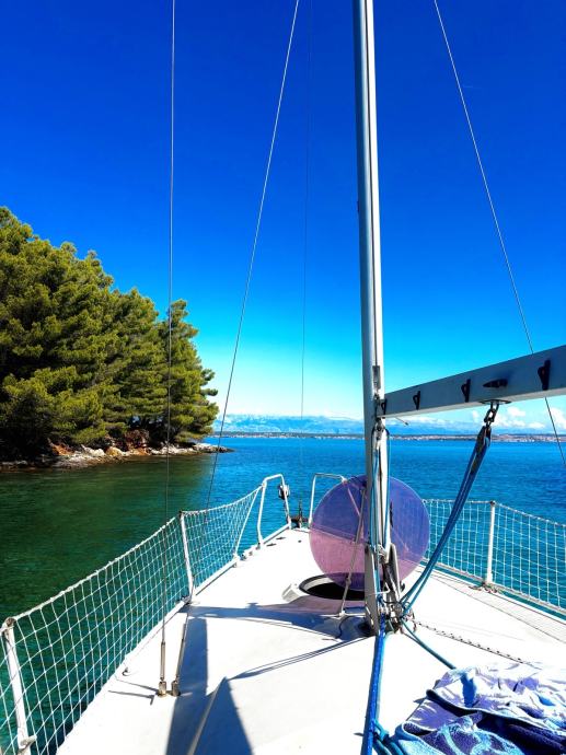 Jedrilica iza ima otvor za pentu, tako da je penta s unutarnje strane broda, a ne izvana.