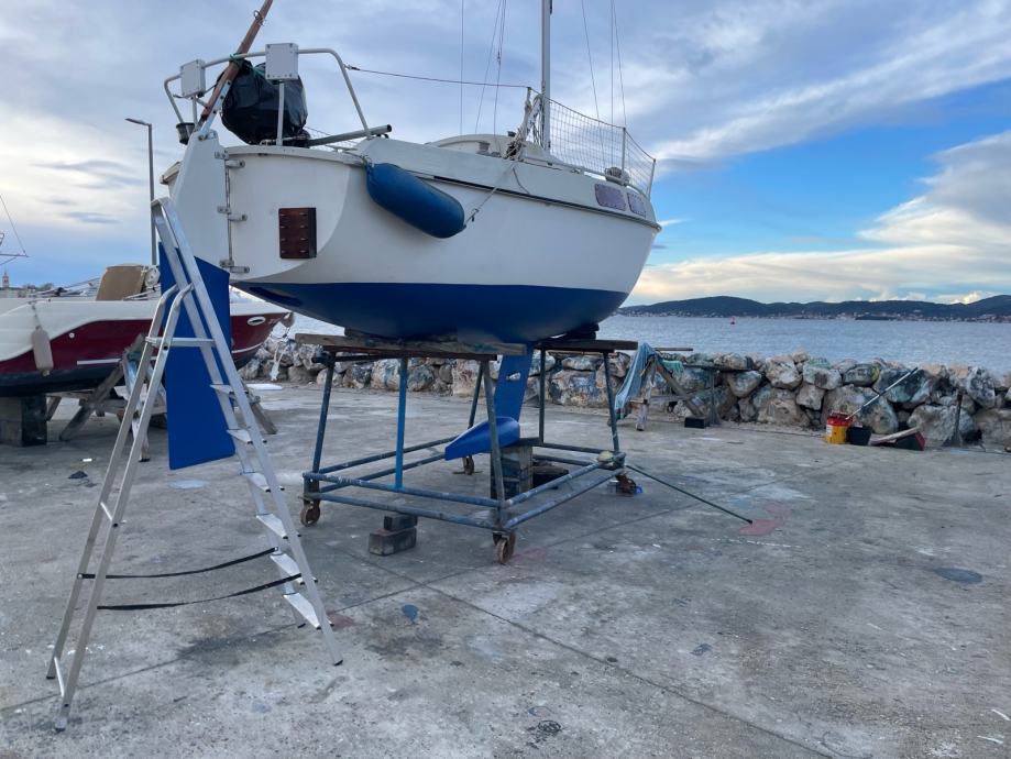 Ima kobilicu koja se moze uvući. Međutim stari vlasnik je stavio cink (poprilicno velik) na kobilicu koji onda sprečava podizanje iste za više od nekih 20 cm. Inace max 60 cm. Ja sam zamjenio na istom mjestu cink da ne bušim nove rupe. Za plovidbu u plikom to nije toliko ni bitno jer ima poprilično tešku kobilicu sa samo 1,25m dužine.