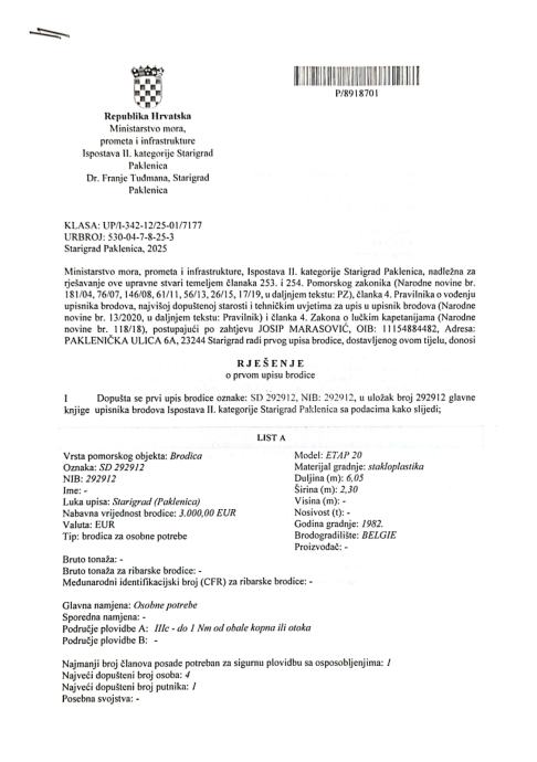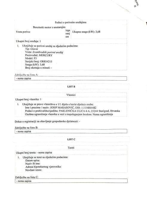 Moguća prodaja samo jedrilice bez pente i trajlera