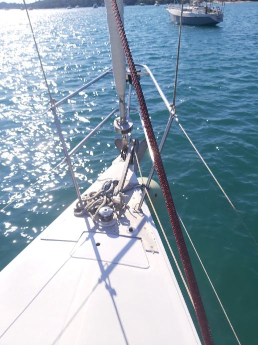 3 nove baterije 2x100 Ah servisne, 1x180 Ah motorna; sidreni vinč + 50m lanca+ rezervno sidro mačak; 2 argole duža i karaća; glavno jedro+ genova+ olujno jedro; Vebasto novi;
