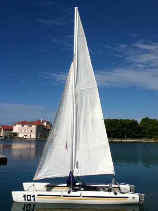 Katamaran sadrži komplet nova jedra( glavno jedro, flok) te LEWMAR opremu.