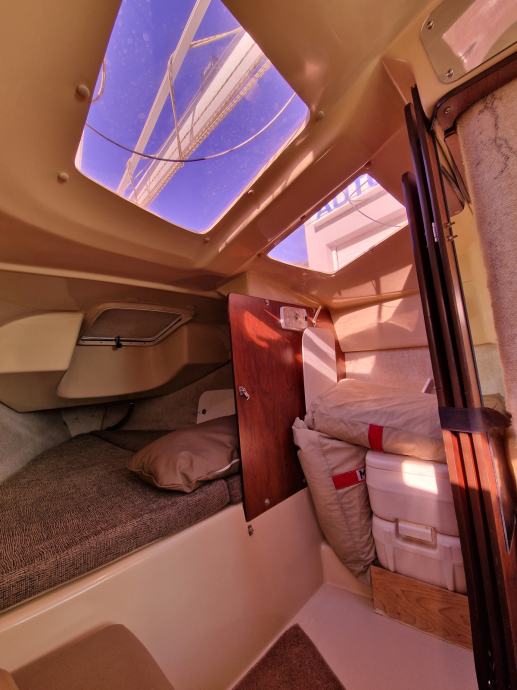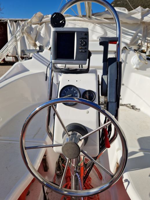 Unikatna jedrilica američke proizvodnje, 2005 godište sa motorom Selva (Yamaha) 40/60, kompletno ispolirana, prefarban podvodni premaz, kobilica na uvlačenje, balastni tank 900 lit, komplet jedara, sidreni vinč sa nožnim komandama, špirun sa vodilicom za sidro, pramčani prolaz kroz kabinu, solarni panel 95W, manualna kaljužna pumpa, GPS Garmin420, aluminijska bimini tenda, 2 kabine, komforan salon sa frižiderom, sudoperom, plinskim kuhalom sa bocom, sklopivi stol, klupe u spužvama, kemijski WC, pregradom odvojena prednja kabina, priključak 220V, punjač baterija.. HR zastava