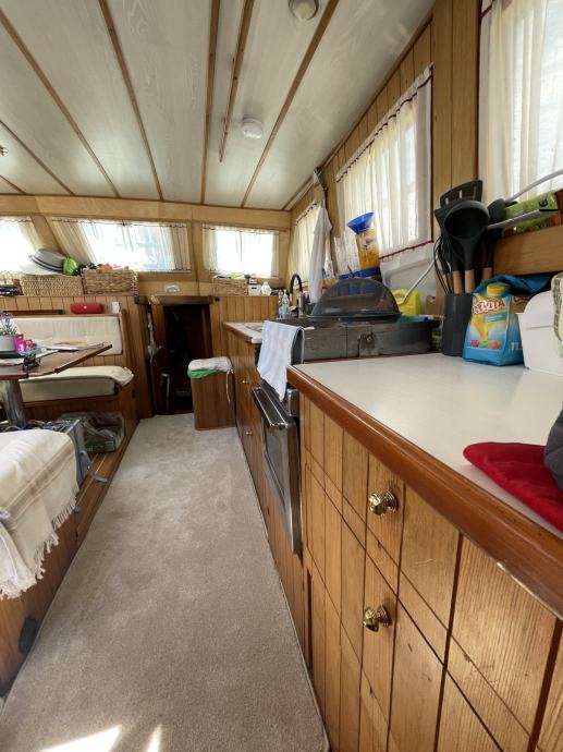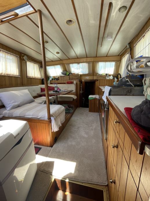 Duljina: 11,5 m , Širina: 3,7 m , Motor: DAF dizel, 105 KS Materijal trupa: čelik, Tip: motorno jedrilica (motor sailer) Vrlo stabilna na moru . Mnogo ravnih površina – idealno za udoban boravak i sigurno kretanje