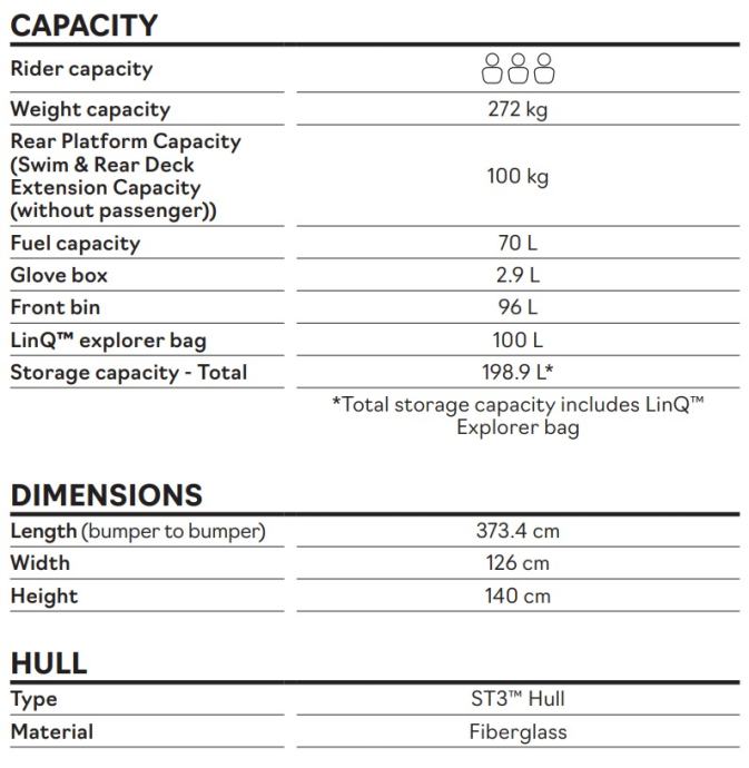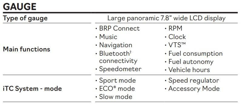 • Tech Package: BRP Audio - premium system & Full color 7.8” wide display, USB port