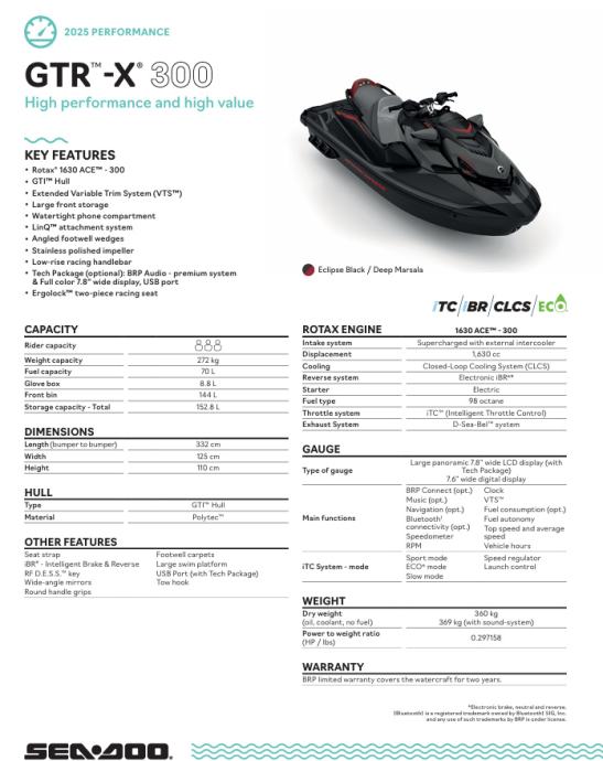 • Tech Package (optional): BRP Audio - premium system & Full color 7.8” wide display, USB port