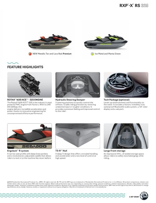 • Tech Package (optional on Metallic Tan / Lava Red model): BRP Audio - premium system & Full color 7.8” wide display, USB port