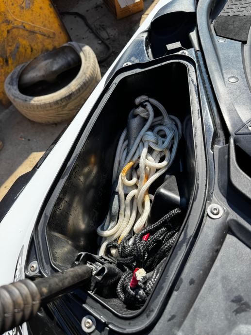 Uz jet dajem sve što je trenutno u stražnjim pretincima: sidro, vatrogasni aparat i 2 konopa za priveze. Uz to dajem i ceradu te 2 seadoo prsluka.