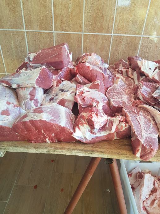 prodaje se mlada domaca junetina u paketu sto podrazumijeva but,lopaticu,vrat,ramstek,rebra,prsa i kosti za juhu.omjer mesa bez kosti iznosi cca 60%takodjer se prodaje mljevena junetina 10€/kg,mjesano mljeveno 9€/kg, cevapi i pljeskavice po cijeni 9€/kg,te kobasice za rostilj po cijeni 8,5eura.minimalna narudzba junetine iznosi 5 kg.klanje u ovlastenoj klaonici,iskljucivo hrvatska junetina,za podrucje zagreba besplatna dostava.