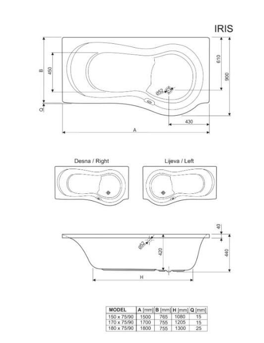 Prodajem kadu Aquaestil Iris, desna varijanta, 150 x 75/90 cm, asimetričnog oblika, s oblogom sprijeda, idealna za kupanje i tuširanje pošto ima ravno dno pa se teže kliže. Slabo korištena i bez oštećenja, trenutno je ugrađena u kupaonici, kroz neko vrijeme ide van.