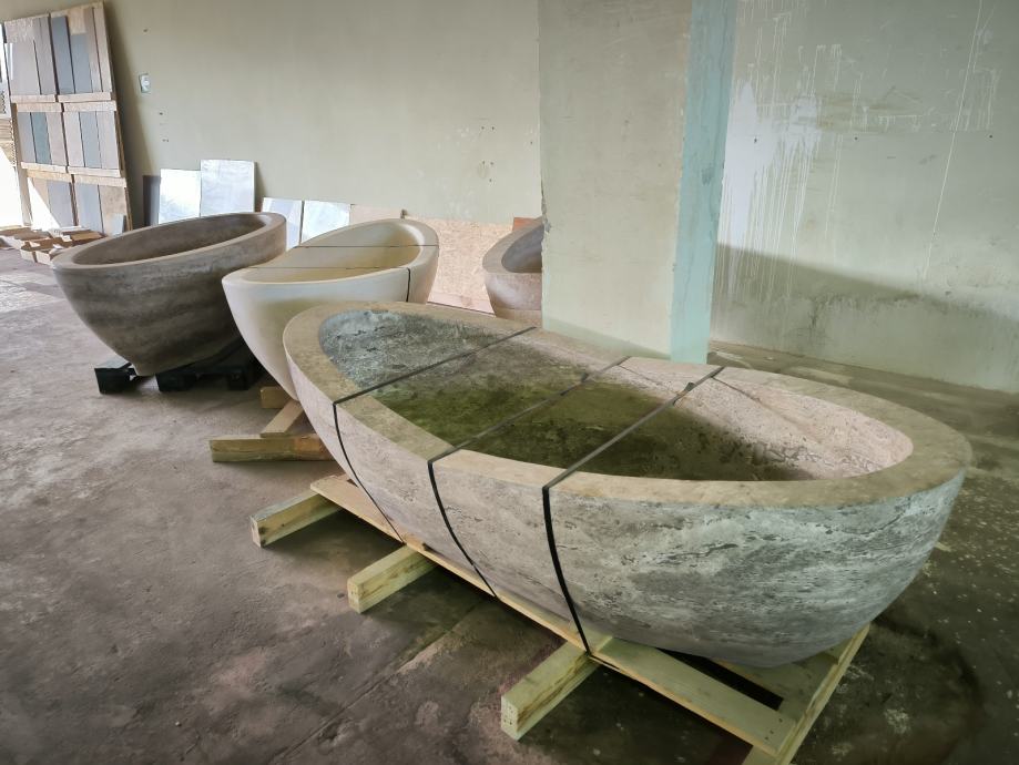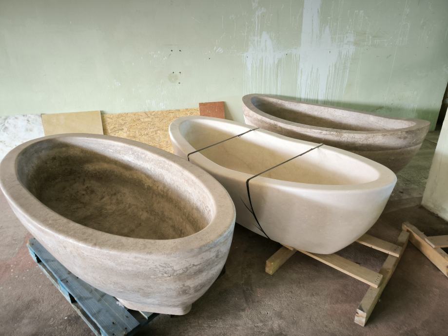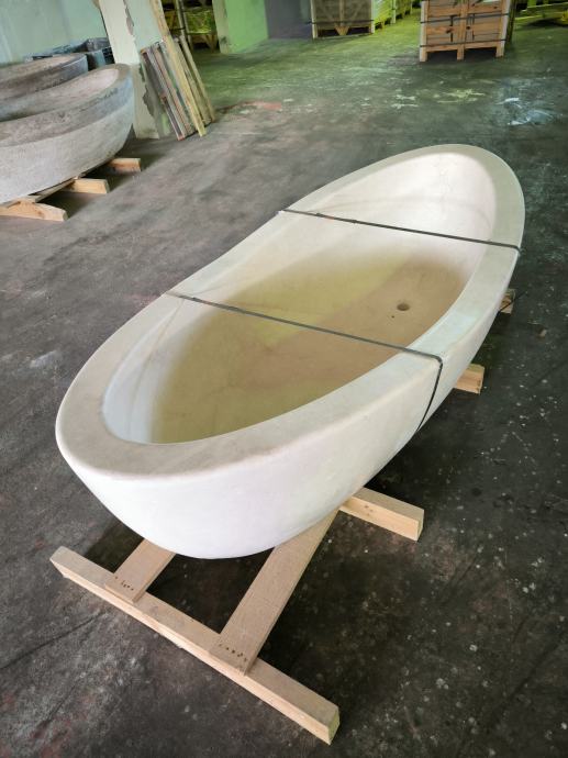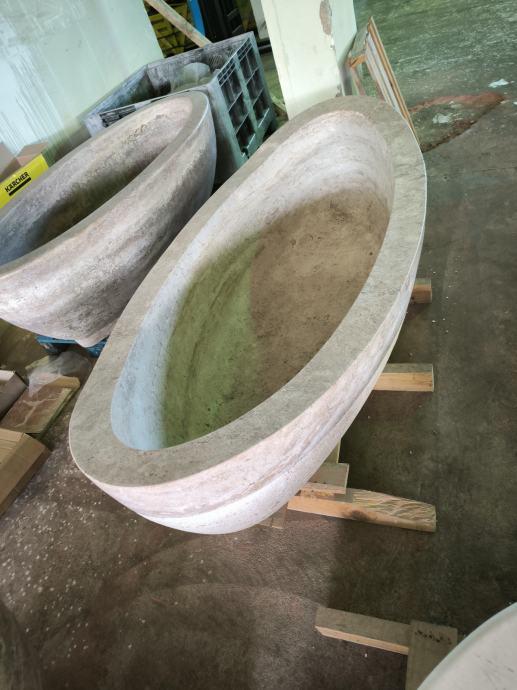 Kade samostojeće, Travertin i Blanco mramor, napravljene od prirodnog kamena. CIjena od 6300 do 11000 po kadi, ovisno o materijalu.