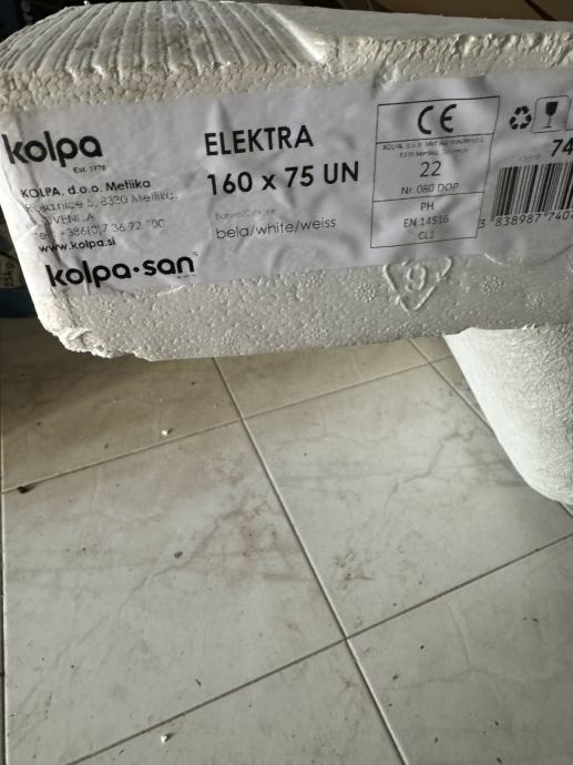 Prodaje se nova kada za ugradnju Kolpa San Elektra 160x75, Up&Down odlivno prelivna garnitura, podnožje/nogice i metalna vratašca.