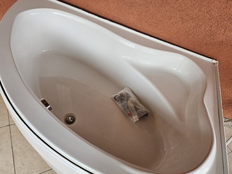 Prodajem rabljenu kutnu Aquastil kadu,dimenzija 150×100, sa oblogom i stropnim inox nosačem za zavjesu,bez oštećenja.