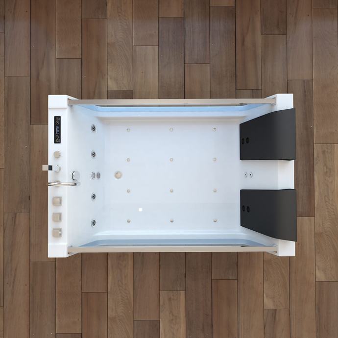 Zbog velikih dimenzija od 180 x 120 x 60 cm i dva optički atraktivna naslona za glavu, ovaj whirlpool može koristiti i par. Četiri podesive velike mlaznice s hidromasažom, 6 tijela i 12 mlaznica za zrak omogućuju potpuno opuštanje. Moderan dizajn, zajedno s dobrom funkcionalnošću, zaokružuje naš bestseler. Opustite se uz umirujući jacuzzi, a inovativna svjetlosna terapija boji vodu u nježne i umirujuće boje. Nisu samo značajke izvanredne, kvaliteta je više nego poštena za cijenu. Ovdje se posebno treba istaknuti ojačani, briljantno bijeli ABS sanitarni akril, visokokvalitetne armature, kao i konstrukciju aluminijskog okvira i računalno upravljani dodirni element. Noge za kadu podesive po visini, koje se mogu prilagoditi gotovo svakoj površini, olakšavaju postavljanje ovog proizvoda bilo gdje.