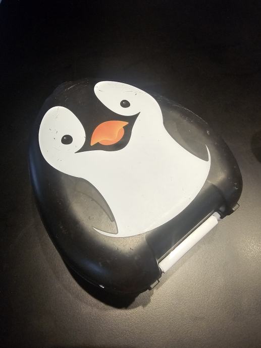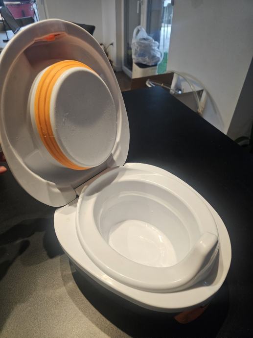 Prodajem Carry Potty prijenosni WC za odvikavanje od pelena s motivom pingvina. Radi se o kompaktnoj kahlici koja se zatvara poput kovčežića, s praktičnom ručkom u narančastoj boji za nošenje. Dizajn s pingvinom na poklopcu dolazi u crno-bijeloj kombinaciji boja.