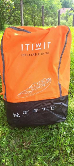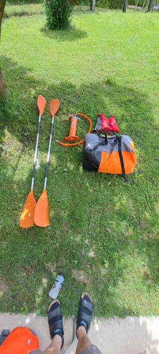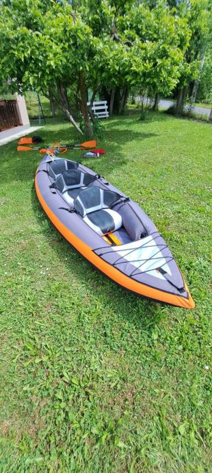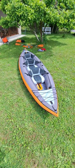 Kajak na napuhavanje za 3 osobe, dužine 382cm. U cijeni dva vesla, pumpa i dječji prsluk.