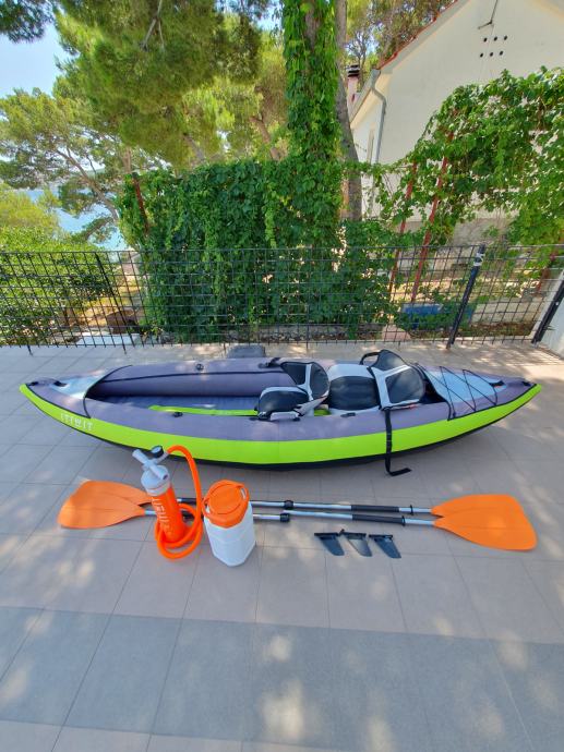 Prodajem navedeni kajak za dvije osobe MAX nosivost 150kg sa pumpom za napuhavanje, 2 para vesala te vodonepropusnim spremnikom 10L.