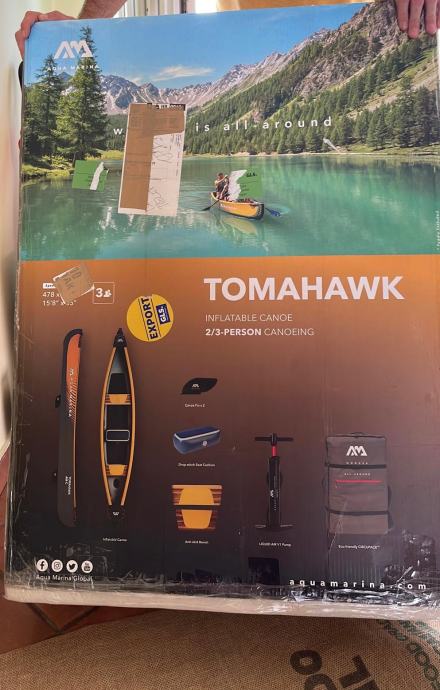 Kajak na napuhavanje Aqua Marina Tomahawk Air C3 s pumpom i sa karbonskim veslima.