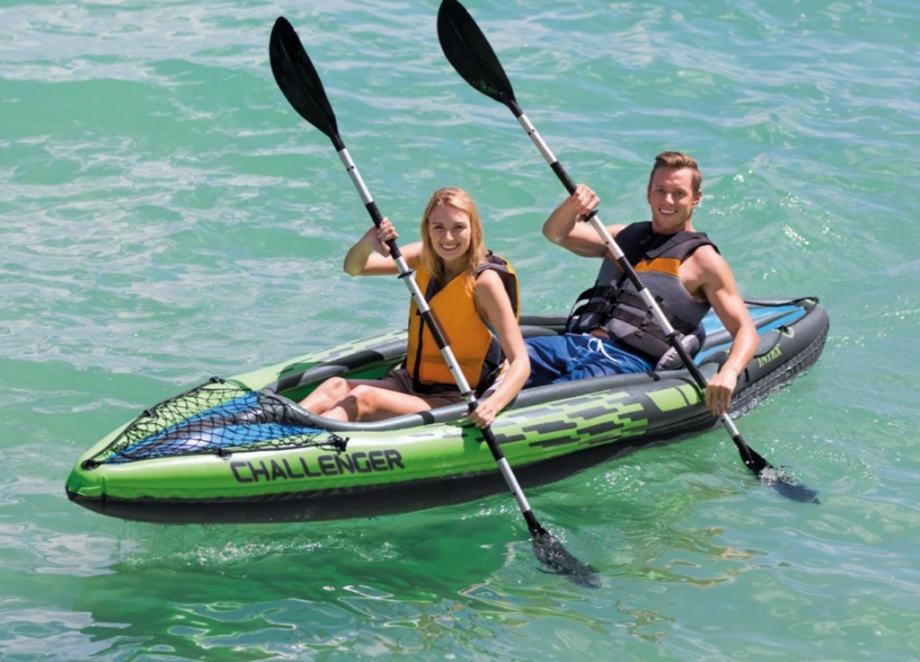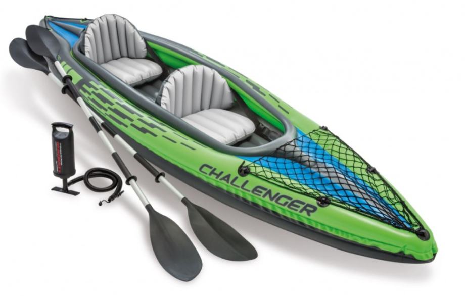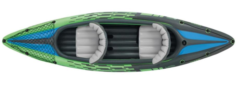 Kajak Intex K2 je već više godina među najpoznatijim kajacima na napuhavanje. Ima 2 sjedala sa naslonom za leđa. Napravljene je visokokvalitetnim i otpornim Super Tough PVC-em, koji je otporan na sunčane zrake, ulje i morsku vodu. Primjeren za transport 2 osobe do skupnih 180 kg težine. Ima aerodinamičan oblik za lakše i brže veslanje. Pod prednjom mrežicom moguće je postaviti torbu.Odstranljiva peraja.Dimenzije kajaka: 351 x 76 x 38 cmDno na napuhavanje za veću udobnostSet za popravku2 sjedalaPumpa za napuhavanje uključena3 ventila za napuhavanje i pražnjenjeNosivost: 180 kgTežina: 17,9 kg2x vesla uključena