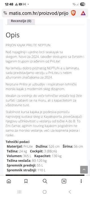 Kayak je potpuno nov, nikad korišten. Cijena za koju prodajem kajak je 25% niža od ponude na tržištu. Moguča zamjena za Hobie Outback (ili slicno).