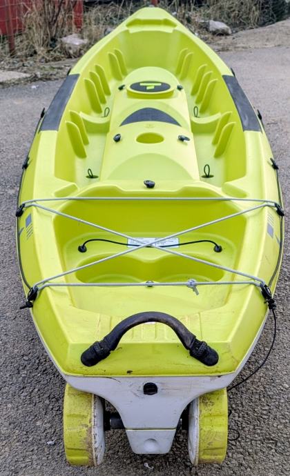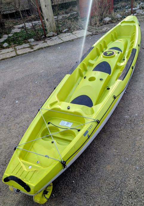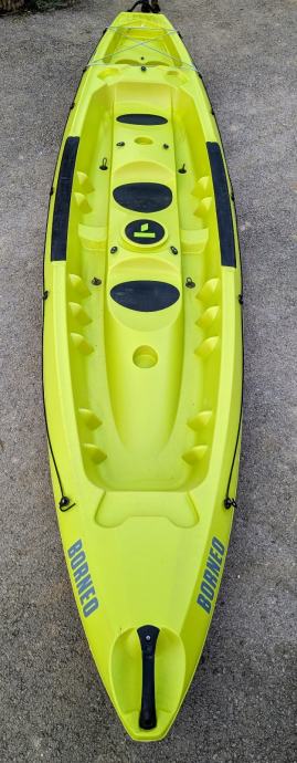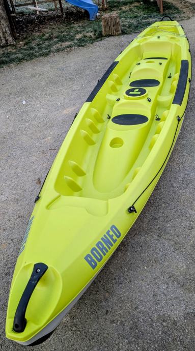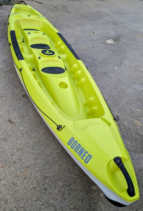 Prodajem kajak/kanu Borneo upečljive žuto-zelene boje u odličnom stanju, idealan za tri osobe. Praktičan dizajn s više sjedala i držačima čini ga savršenim za obiteljske izlete na vodi. Izgleda kao nov, vrlo malo korišten i spreman za vaše vodene avanture.
