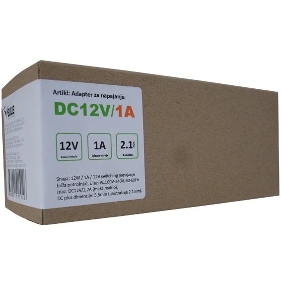 Adapter za napajanje, ulaz AC 100 - 240 V, 50 / 60 Hz, izlaz 12 V / 1 A, konektor dimenzije 5.5 mm ( unutarnja 2.1 mm )