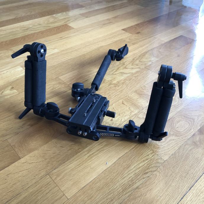 Gearbox Spider su lagane, sklopive i prilagodljive ručke koje olakšavaju korištenje manjih kamera i HDSLR-a. Sa Spiderom možete snimati s ramena, iz ruke, sa stativa, s kolica ili krana. Za svaku od ovih pozicija ručke nije potrebno skidati s kamere i brzo ih se može prilagoditi bez dodatnih dijelova. Ručke u poziciji studio služe i kao držači za kablove, a ručka koja inače služi kao oslonac za rame u tom slučaju će služiti kao ručka za nošenje HDSLR-a ili snimanje niskog rakursa iz ruke. Tri prilagodljive ručke se vrlo jednostavno mogu namjestiti u ugodan položaj za snimanje s ramena za snimatelje svih visina, a uz upotrebu LCD lupe položaj je još stabilniji. Prednje ručke se nalaze ispred kamere te je težina jednako raspoređena na tri točke, pa se kameru može i odložiti na svaku ravnu površinu. Ručke se mogu sklopiti tako da stanu u torbu srednje veličine zajedno sa svim objektivima i kamerom.