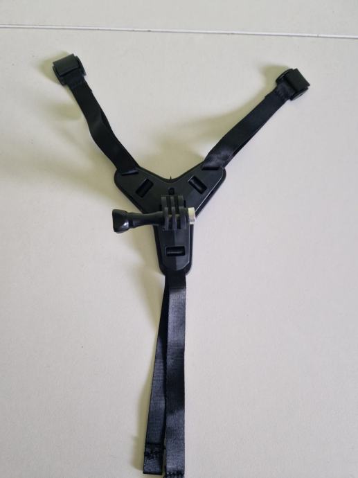 Prodajem novi, nekorišteni nosač akcijskih kamera koji se postavlja na kacigu. Učvršćuje se za kacigu pomoću 2 trake na stezanje.