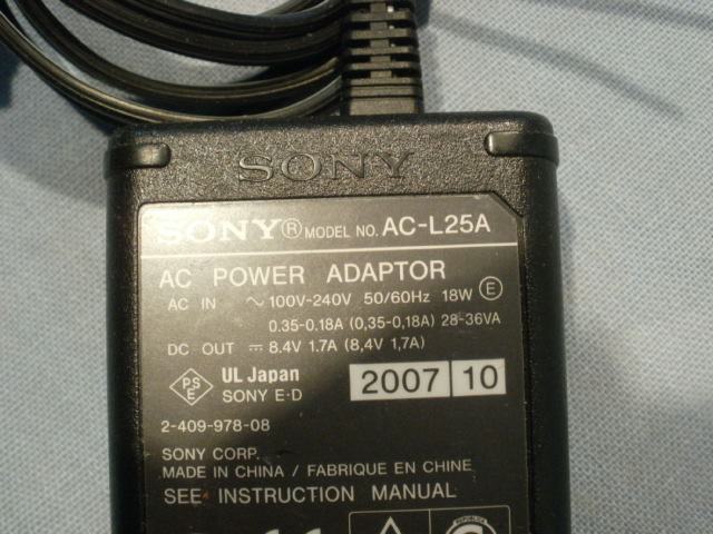 PUNJAČ ZA KAMERU SONY AC-L25A ILI PUNJAČ ZA KAMERU SONY AC-L25B SU POTPUNO ISTI OSIM TOG ZADNJEG SLOVA NA KRAJU. OSIM TOGA PUNJAČ POD OZNAKOM SONY AC-L200 JE ISTI KAO I NAVEDENI PONJAČI OSIM ŠTO JE MALO MANJI PO DIMENZIJI. IMAJU ISTU STRUJA NAPAJANJA, ISTU AMPERAŽU I ISTI TAJ IZLAZ NA KRAJU. VJEROVATNO JE RAZLIKA U MODELU ILI GODINI PROIZVODNJE. ISPROBAN I ISPRAVAN. 098/169-9995.