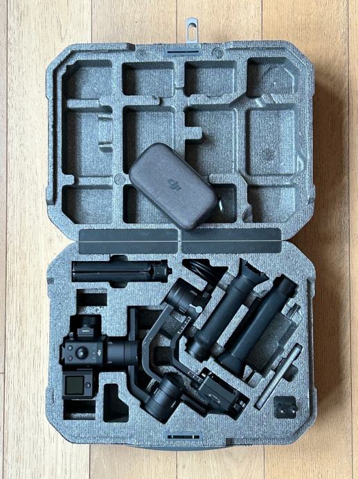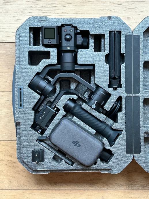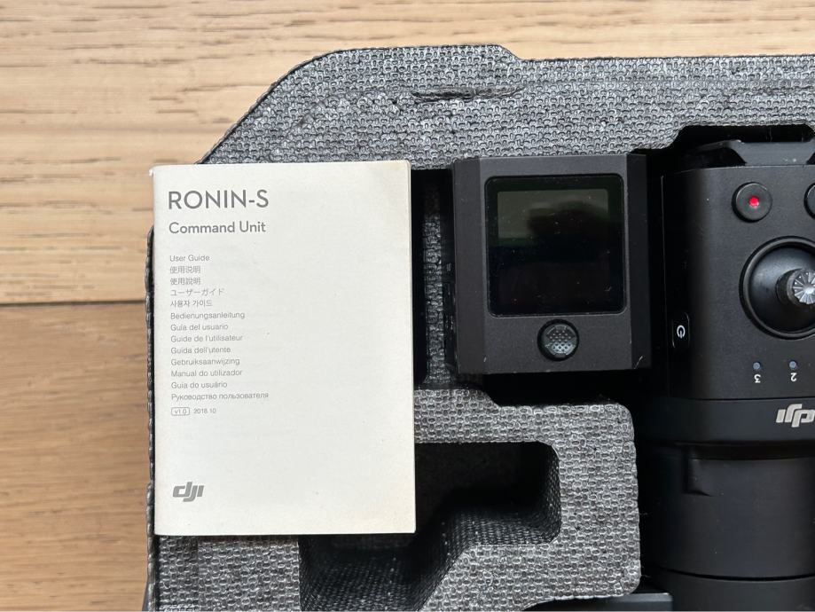 Ronin S gimbal sa zaštitnom kutijom, fokus motorom, command unitom, focus wheel-om i smallrig dodaci za lakše nošenje. Ronin S dolazi i s extra baterijom. Pokoja ogrebotina, ali radi savršeno. Nikad nije pao ili išta slično.