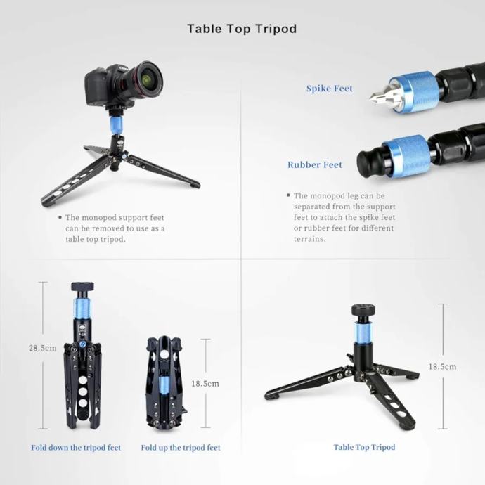 - Aluminijski monopod s bazom koja se naginje za 20°