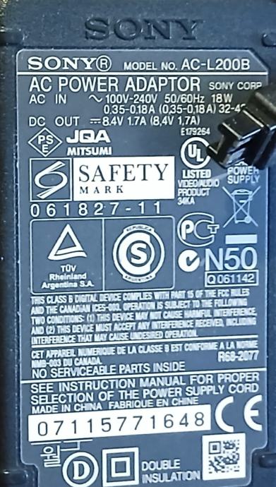 SONY AC-ADAPTER AC-L200B ( 8.4V 1.7A )