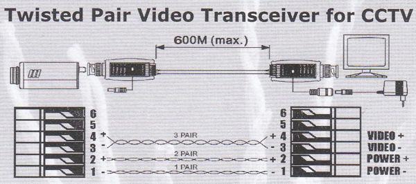1-kanalni pasivni primopredajnik. Prihvaća i prenosi video/audio signale putem UTP kabela