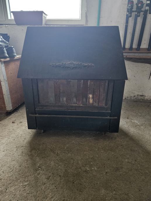 Alfa kamin Rustik, ispravan, ostećeno nekoliko stakalca, umjesto njih stavljene željezne pločice...
