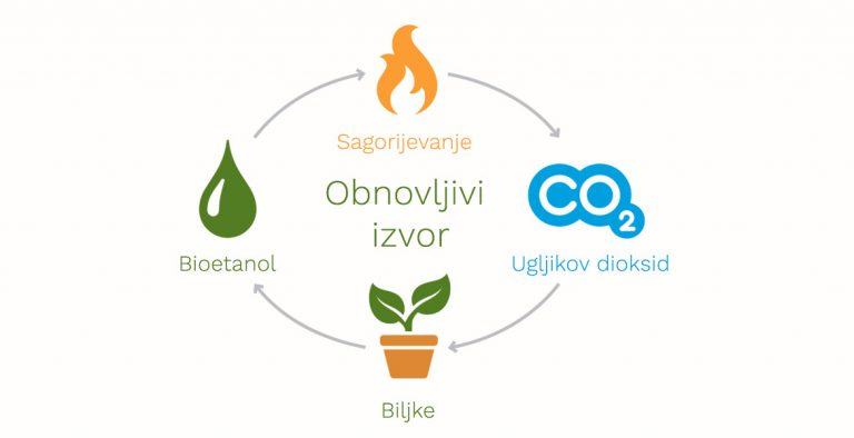 Nema brige oko gorenja jer je gorivo bioetanol – 96% alkohol, čiji je produkt izgaranja ugljikov dioksid (CO2) i voda (H2O). To je upravo ono što čovjek inače izdiše.