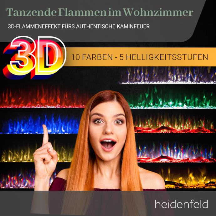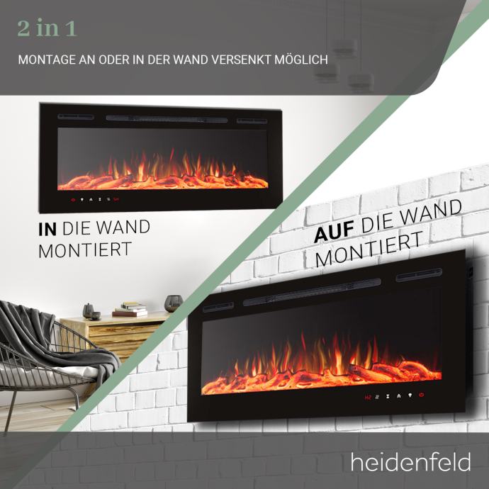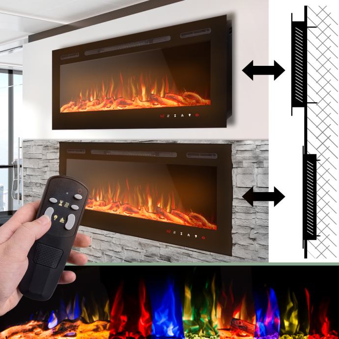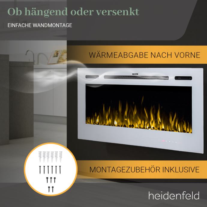 Električni kamin HF-WK200, bijelo/crno, ugradbeni , 3D efekt plamena