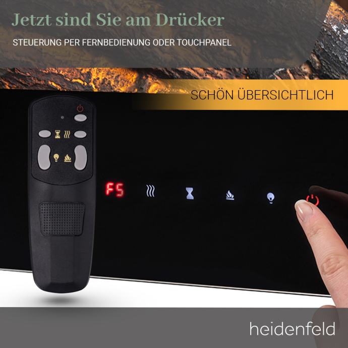 Upravljanje: upravljačkim elementom preko touch panela na grijalici ili daljinskim upravljačem